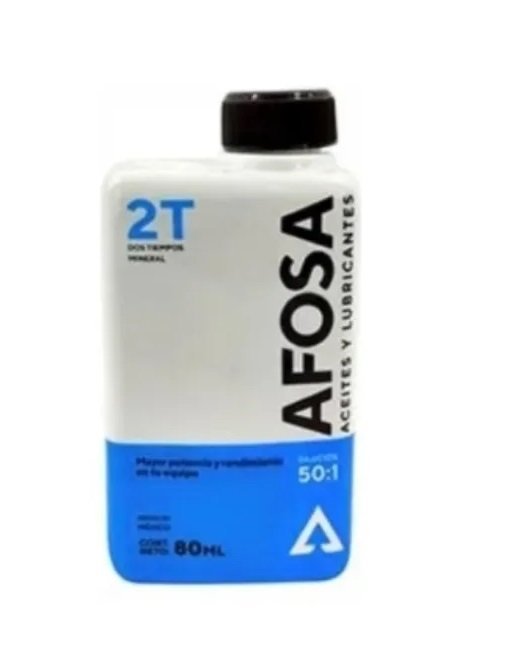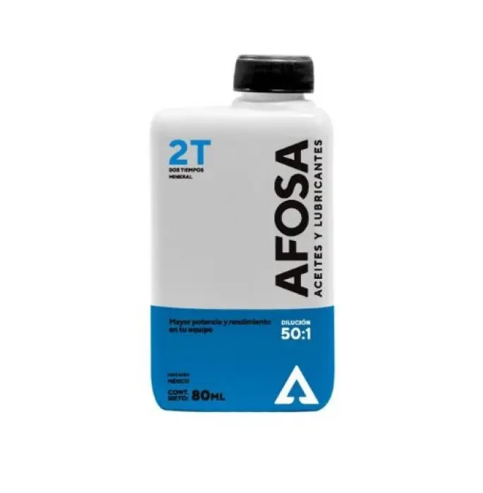 El Aceite para Motores 2 Tiempos Afosa A2T-80 de 80ml es el lubricante esencial diseñado para prolongar la vida útil y maximizar el rendimiento de tus equipos con motores de 2 tiempos. Formulado para ofrecer una lubricación superior y una combustión más limpia, este aceite mineral asegura una operación suave y eficiente en diversas condiciones.