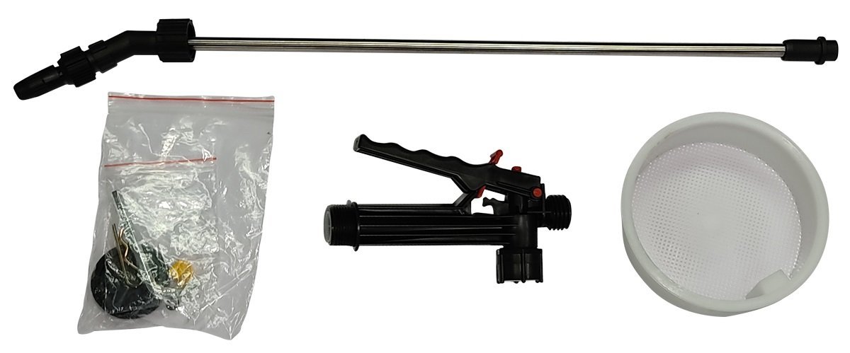 Incluye: Manguera, Lanza, Boquilla Profesional, Mango reforzado, Tirantes de sujeción, Kit de herramientas