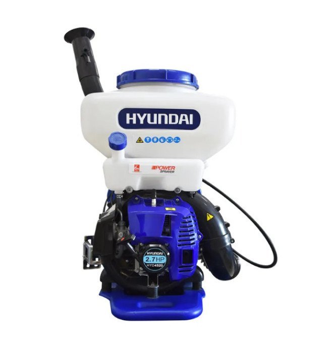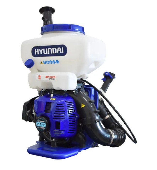 Aspersora Agrícola Hyundai HYD4520 con motor 2 tiempos de 45cc para polvo y líquidos de uso agrícola con tanque de 20 litros. Ideales para fumigación de árboles cítricos, caña de azúcar, maíz y todo tipo de cultivos.