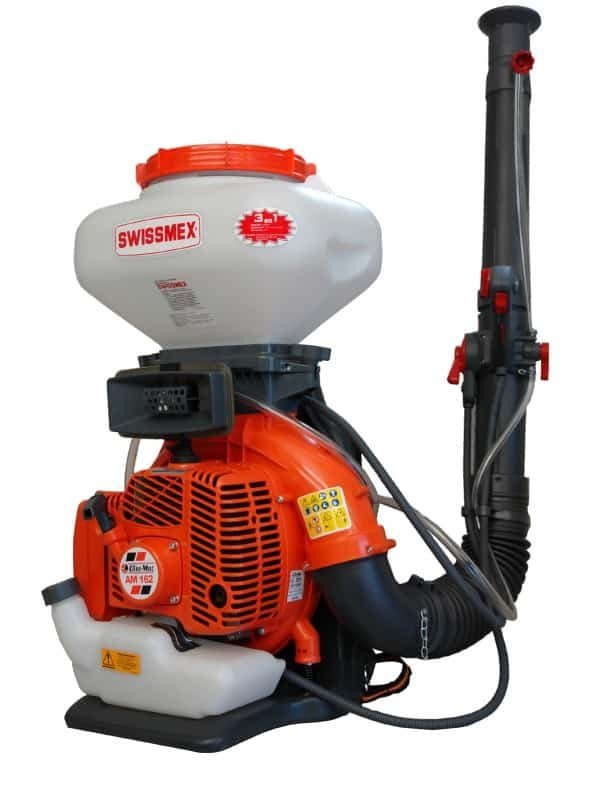 Aspersora Swissmex AM162 927002 profesional 3 en 1, pulverizadora ideal para sanitizar, desinfectar y combatir el mosquito transmisor del dengue. Además para aplicaciones de herbicidas, fungicidas, insecticidas, etc. Con buen alcance horizontal y vertical. 3 en 1 para polvos, líquidos y ULV