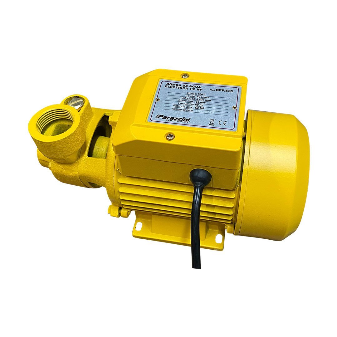 La Bomba de Agua Eléctrica BPP.535 PARAZZINI 1/2HP es capaz de entregar gran presión de descarga con motores de baja potencia. Adecuadas para uso doméstico, aumento de presión de la red de agua potable, típicamente automatizada con un kit hidroneumático o controlador eléctrico. Solo debe bombear agua limpia libre de impurezas.