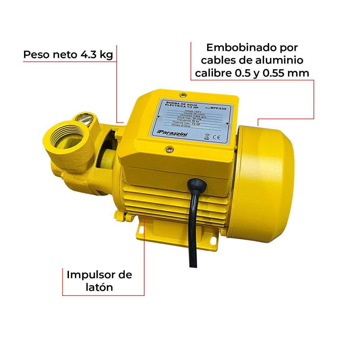 Caracteristicas de Bomba de Agua Eléctrica BPP.535 PARAZZINI 1/2HP