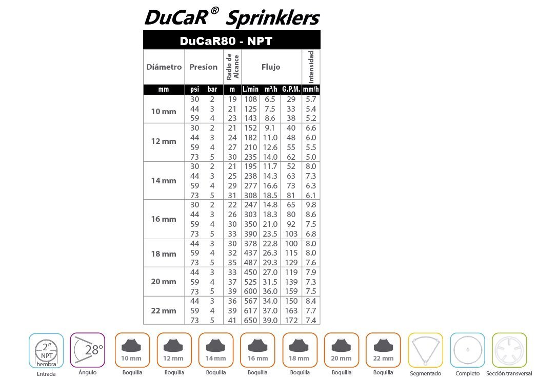 Características Principales Cañón de Riego Ducar DUCAR80 Condor: