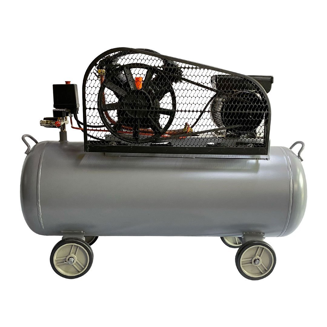 El Compresor COMPH100L Power Hunt con capacidad de 100 litros, este equipo puede alcanzar hasta 1050 rpm. Transmite movimiento al pistón por medio de una polea con banda, lo que prolonga su durabilidad y genera menos ruido.