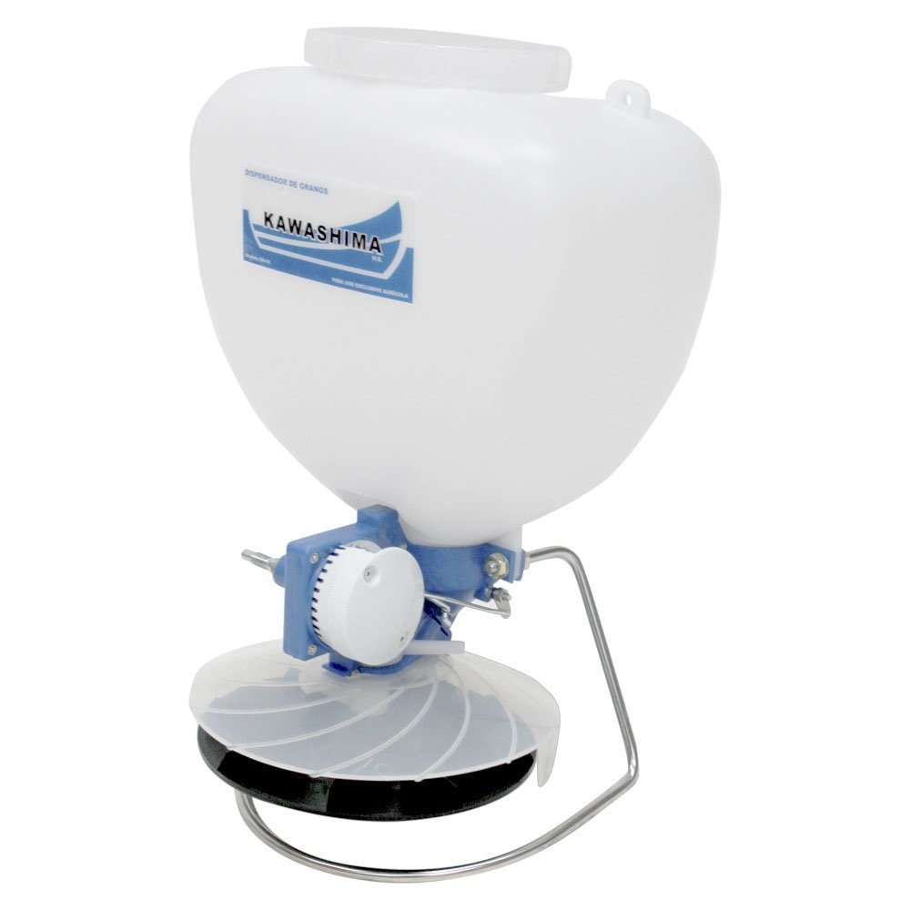 La Fertilizadora Kawashima DG-10 es un esparcidor manual portátil de fertilizante que se puede utilizar tanto para aplicaciones granulares como para semillas. Cuenta con una capacidad de 8 litros y se puede extender hasta 7 metros, con un peso de solo 2 kilos.