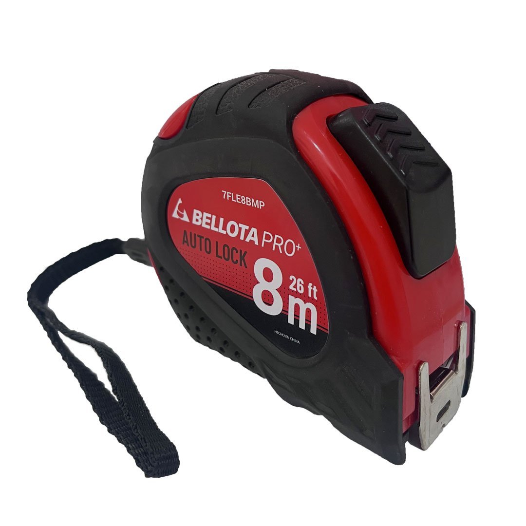 El modelo BELLOTA 7FLE8BMP es autobloqueante, con una carcasa hecha de polipropileno, tiene una longitud de 8 metros, también cuenta con lectura por ambos lados y clip de cinturon, para la comodidad del usuario.