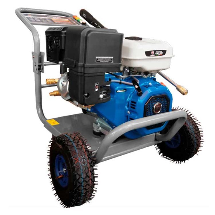 Este modelo está equipado con una bomba tríplex con cuerpo de bronce, pistones recubiertos de cerámica de alta durabilidad y un cigüeñal de acero forjado, lo que garantiza una larga vida útil y un rendimiento óptimo en tareas exigentes.