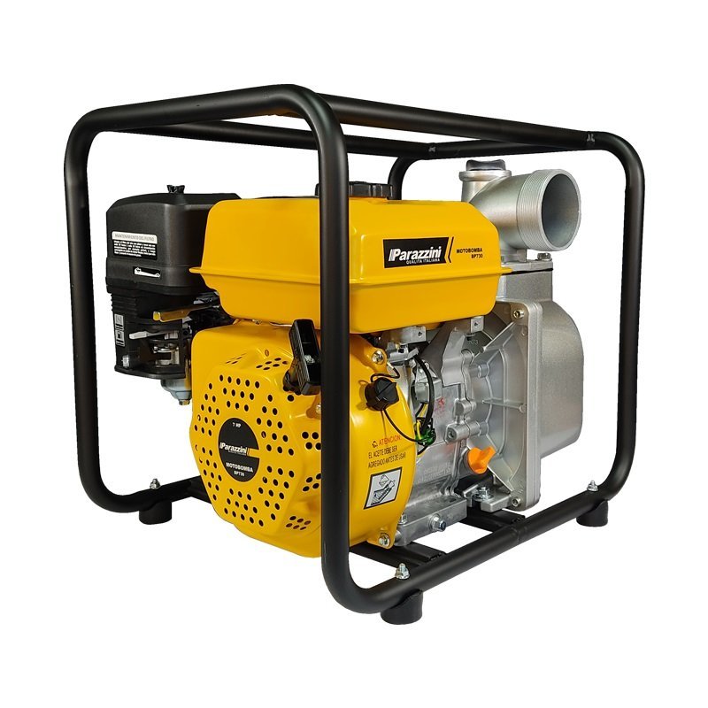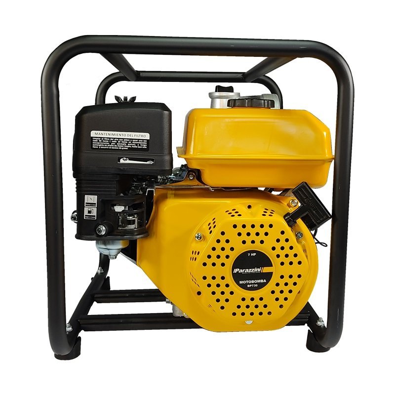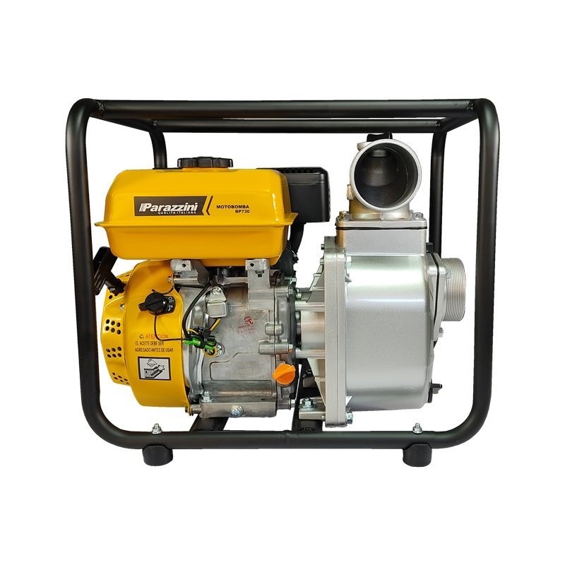 La motobomba Parazzini modelo BP730 es de uso exclusivo agrícola, fácil de transportar y utilizar, ideal para sistemas de riego agrícola. Su motor de 7 caballos de fuerza y de 4 tiempos OHV, generan 3,800 revoluciones por minuto, lo que permite generar una altura de descarga de hasta 28 metros.