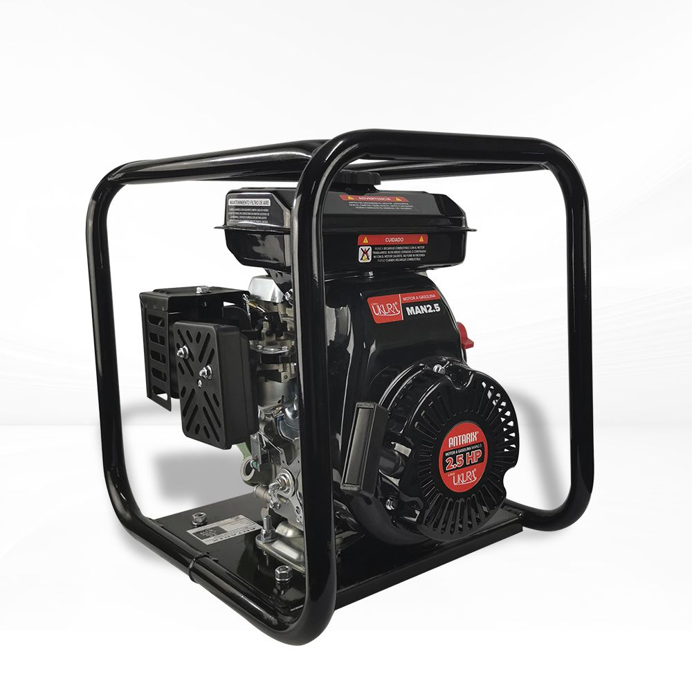 • Motor: Equipada con un motor a gasolina Ukura de 2.5 HP, que garantiza un rendimiento óptimo y duradero.