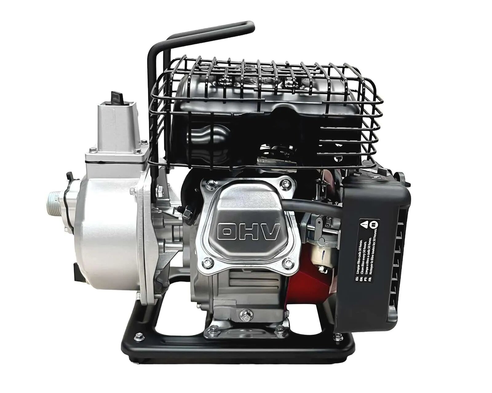 Motobomba autocebante Ducati modelo DCW-25, motor a 4 tiempos de 2.5hp, succión y descarga de 1”, altura máxima de descarga de 28m.